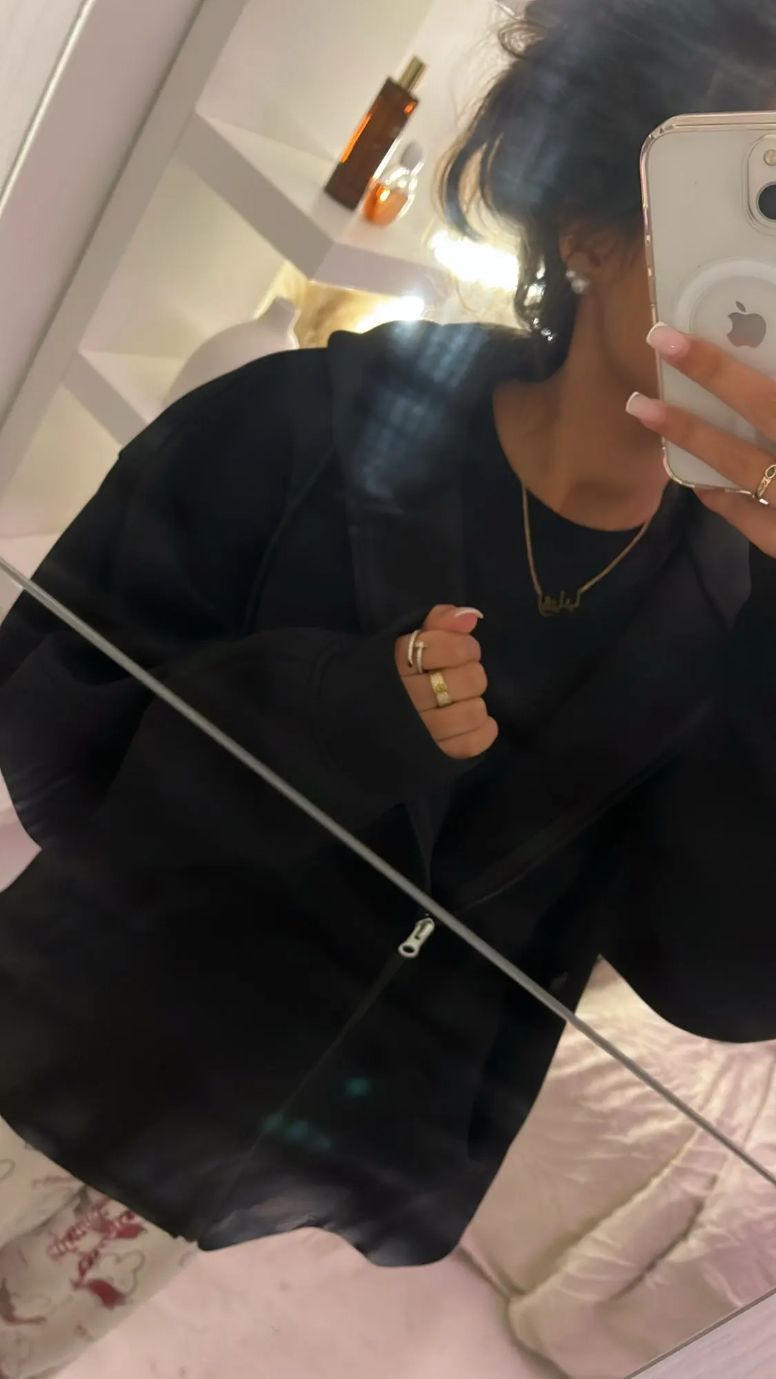 - Oversized hood with built-in eyemask