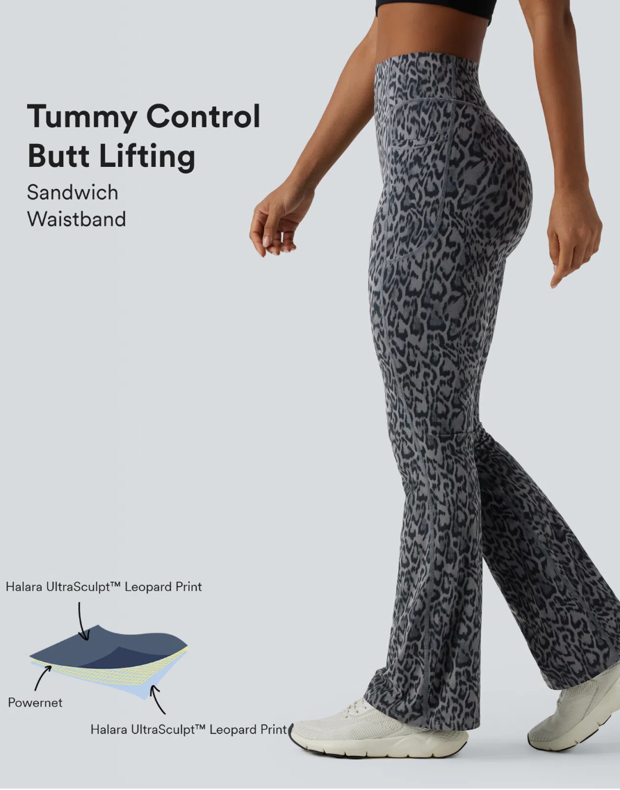 EVORA® Extended Wide Leg Leopard Yoga Pants